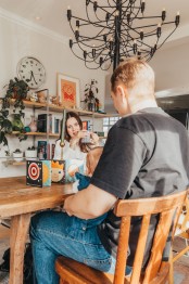 Trots den lilla ytan är studion otroligt flexibel. För mig handlar det om att kunna skapa olika miljöer och stämningar beroende på vilken typ av fotografering eller möten jag jobbar med. En del av charmen med att ha en egen studio är just denna frihet – att kunna omvandla rummet för att passa varje unikt projekt. En dag kanske jag fotar en familj i naturligt dagsljus från det stora fönstret. Ljuset skapar en mjuk, naturlig atmosfär som ger en känsla av ett hem, med bohemisk inredning med en varm och personlig känsla. Alternativt en mer avskalad och stilren look mot vit vägg med poseringslådor.