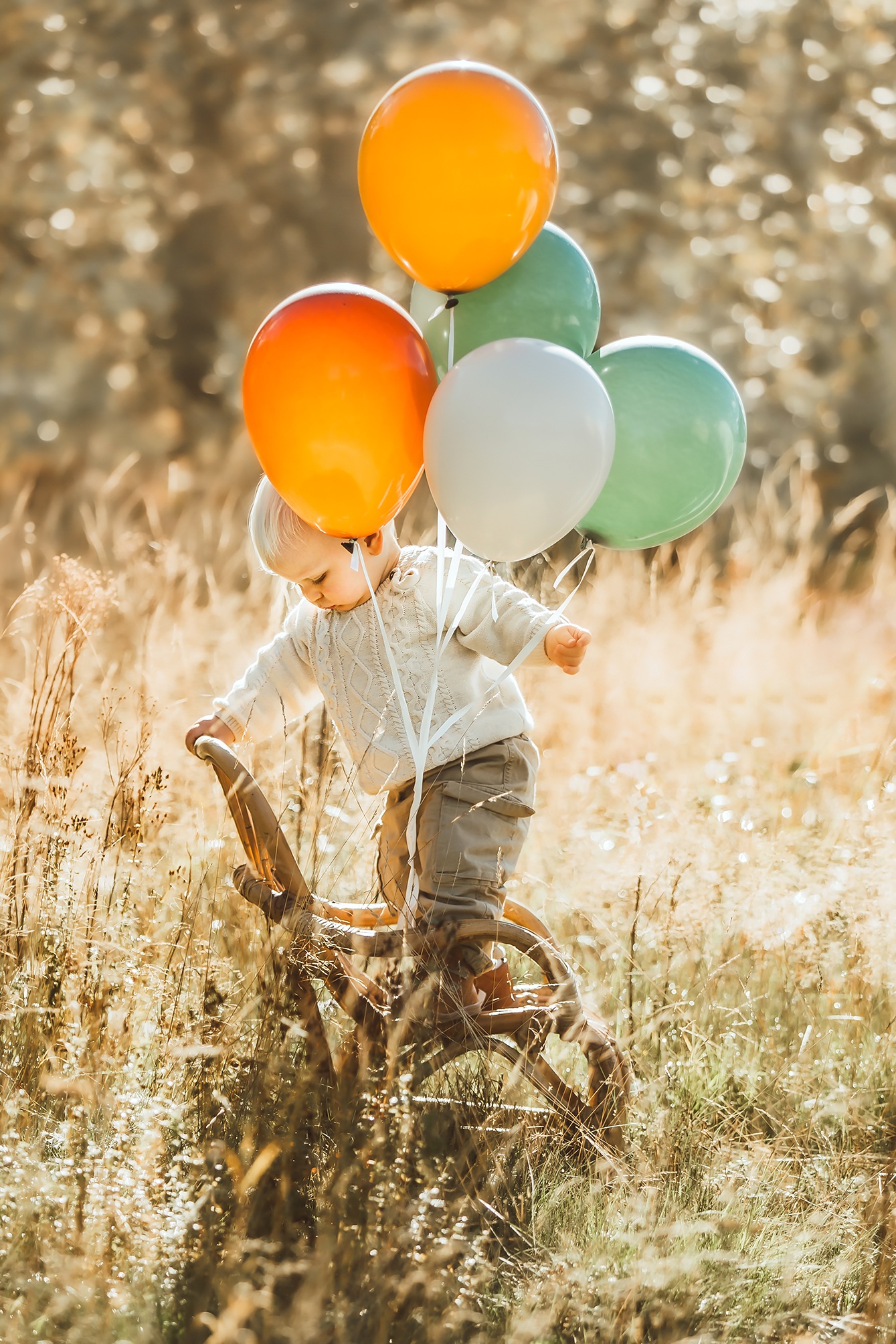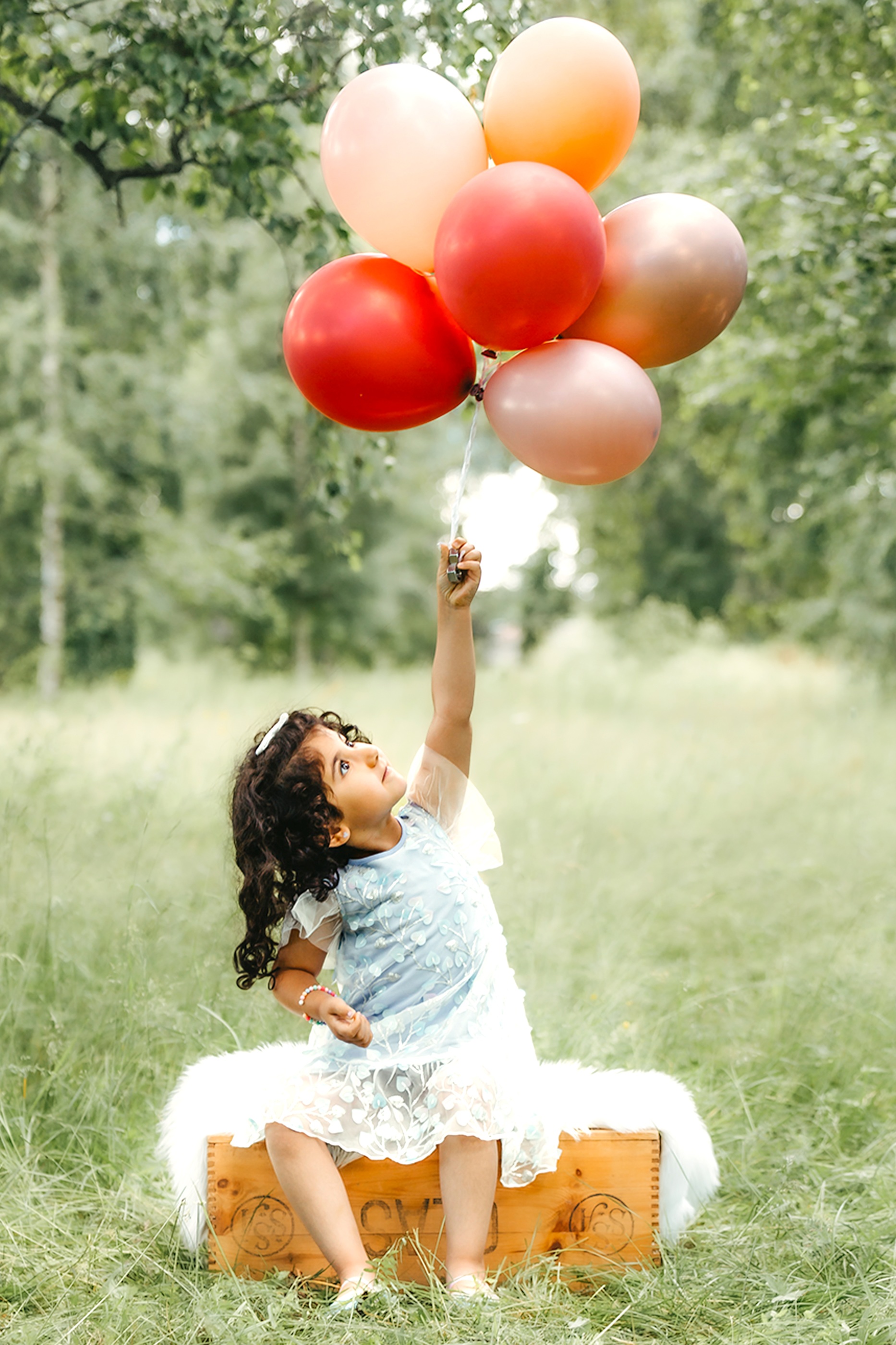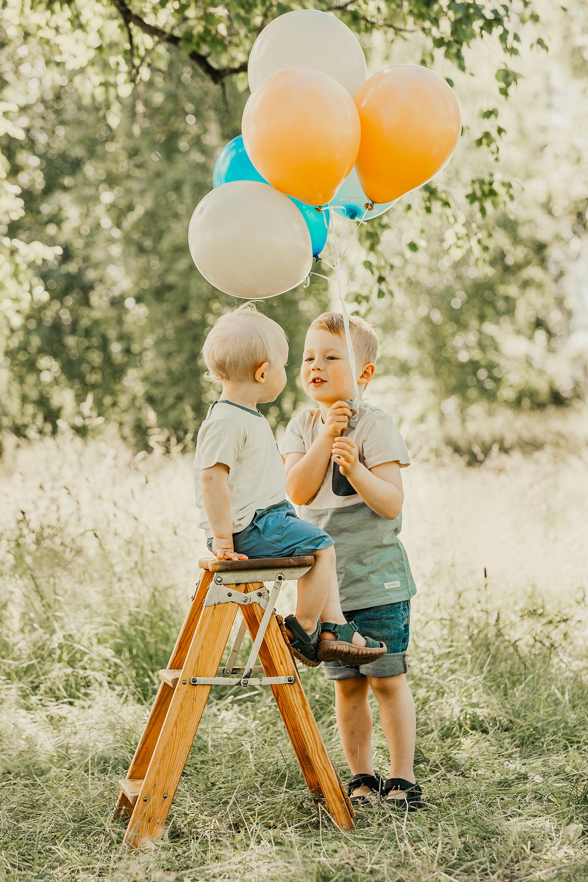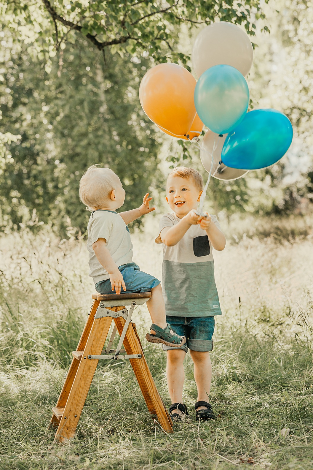 Fotograferingen sker utomhus i naturligt ljus, där miljön tillsammans med de svävande ballongerna ger en drömsk och tidlös känsla. Barnen får utforska, leka och interagera med ballongerna, vilket skapar genuina uttryck och levande bilder fulla av personlighet.